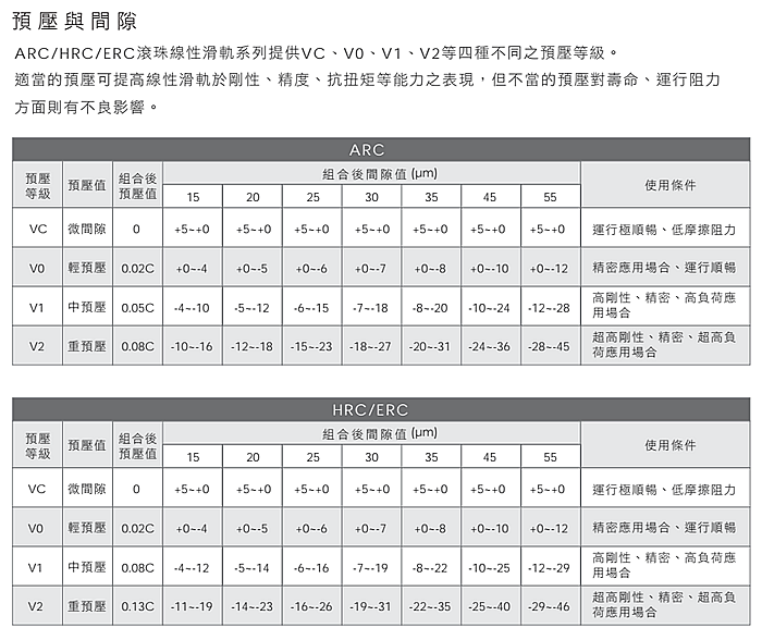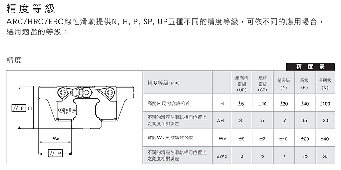 優(yōu)勢特點(diǎn):CPC直線導(dǎo)軌HRC系列優(yōu)點(diǎn): 1、磨耗少能長時間維持精度。 2、定位精度高。 3、適用高速運(yùn)動且大幅降低機(jī)臺所需驅(qū)動馬力。 4、可同時承受上下左右方向的負(fù)荷。 5、潤滑構(gòu)造簡單。 6、組裝容易并具互換性。