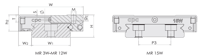 CPC直線導軌MR15WN屬于微型系列直線導軌,組合高度為16mm,滑塊安裝孔為20*45mm。使用CPC直線導軌作為線性導引時,由于CPC直線導軌的摩擦方式為滾動摩擦,不僅摩擦系數降低至滑動導引的1/50,動摩擦力與靜摩擦力的差距亦變得很小。