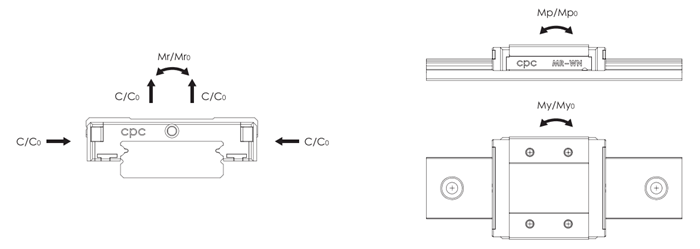 負荷力是依據ISO14728計算得之,額定壽命定義不同時額定動負荷比較:C50B=1.26×C100B